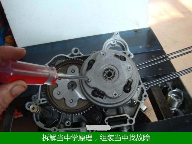 2,這一實(shí)訓(xùn)模塊采用真車拆解模式,小到一個(gè)摩托車電動車儀表,大到一臺發(fā)動機(jī),全部在實(shí)踐中拆解、分離, 終懸掛展示。讓學(xué)生真正動手實(shí)操,了解摩托車電動車構(gòu)造細(xì)節(jié),摩托車電動車運(yùn)作原理,在實(shí)踐中掌握真知。