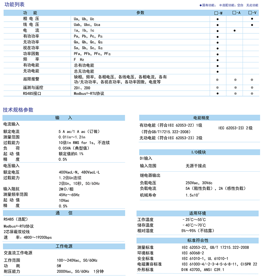 測量項目:三相電力網(wǎng)絡(luò)電壓/電流/有功功率/無功功率 / 頻率 / 功率因數(shù)等,共 28 個電參數(shù)