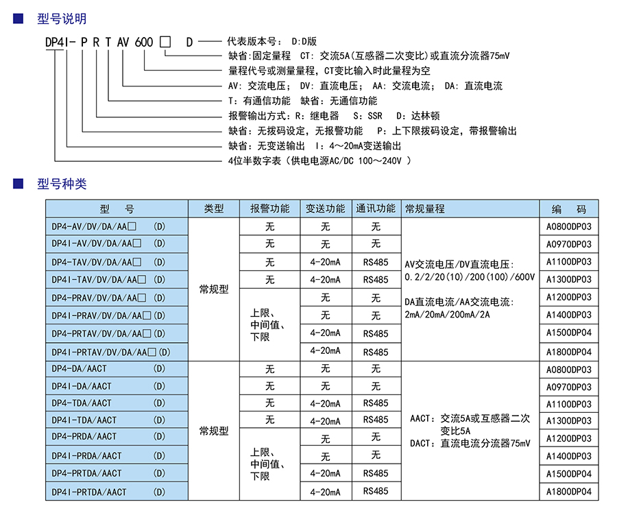 DP4系列四位半高速采樣電壓電流表