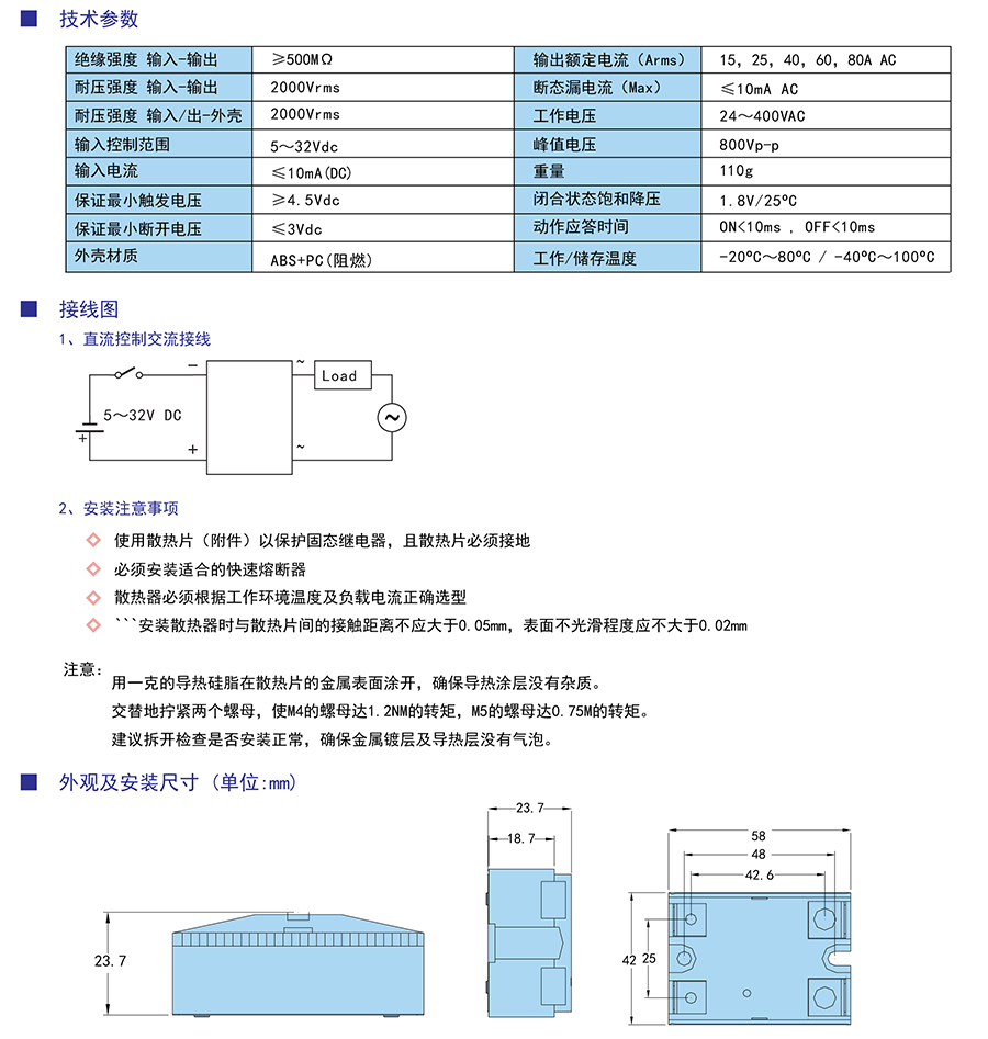 采用光電耦合隔離,輸入-輸出-散熱片之間耐壓強(qiáng)度達(dá)2kV